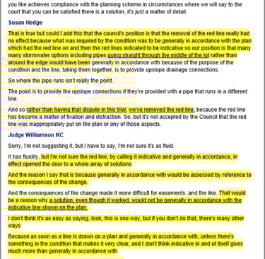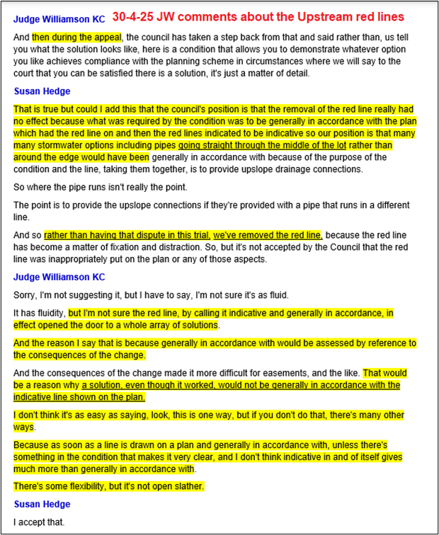 Adrian Schrinner instructed his dumbo barrister Susan Hedge to tell the judge that a stormwater pipe can go "right down the middle of the lot."