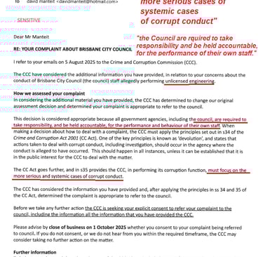 The Crime and Corruption alleges systemic Council corruption, 17-9-25